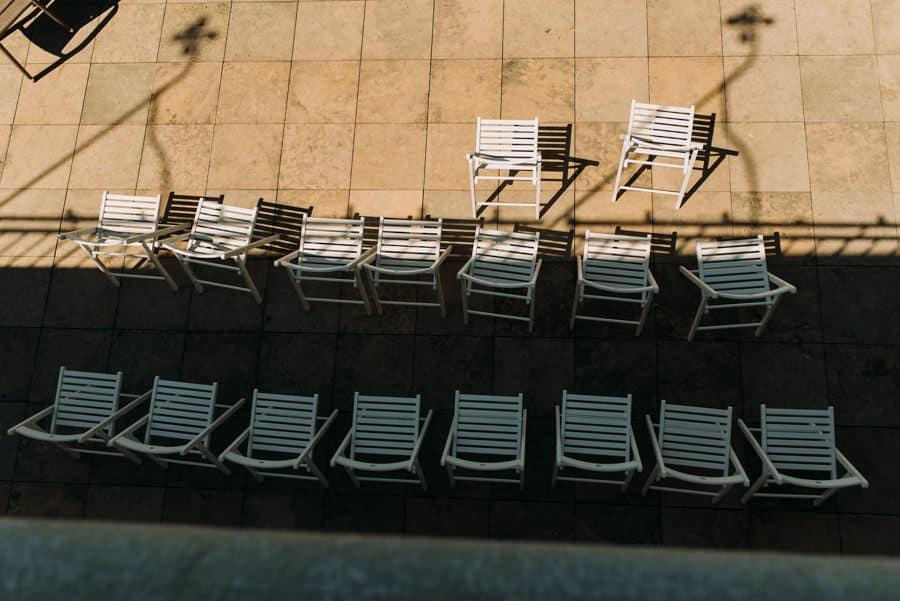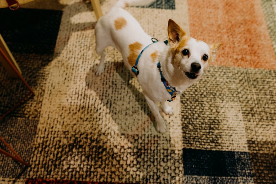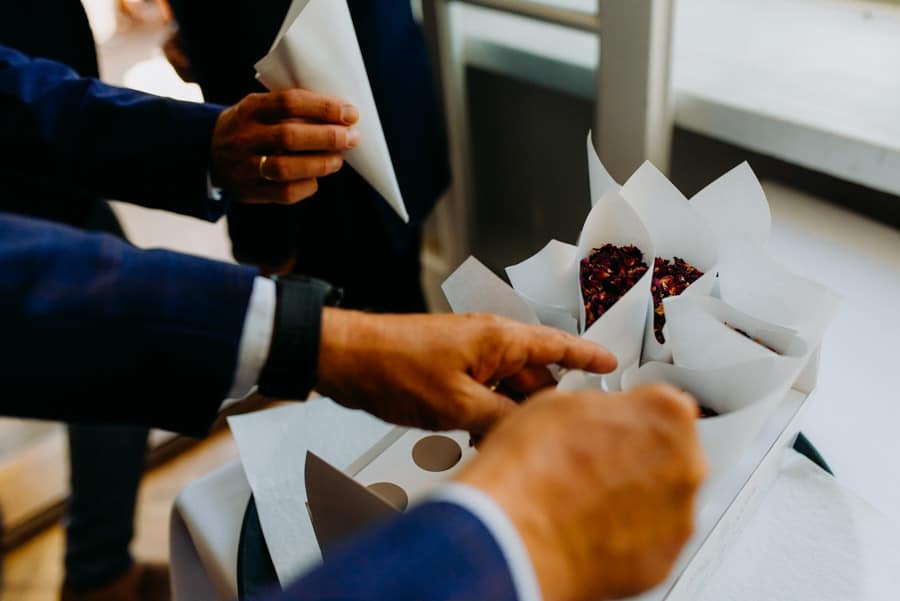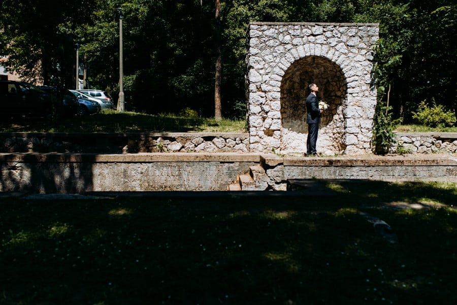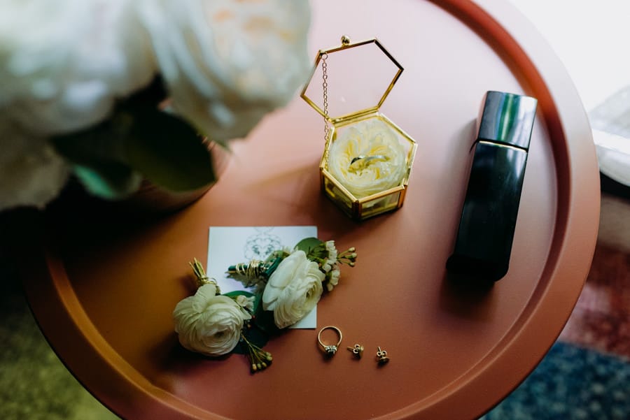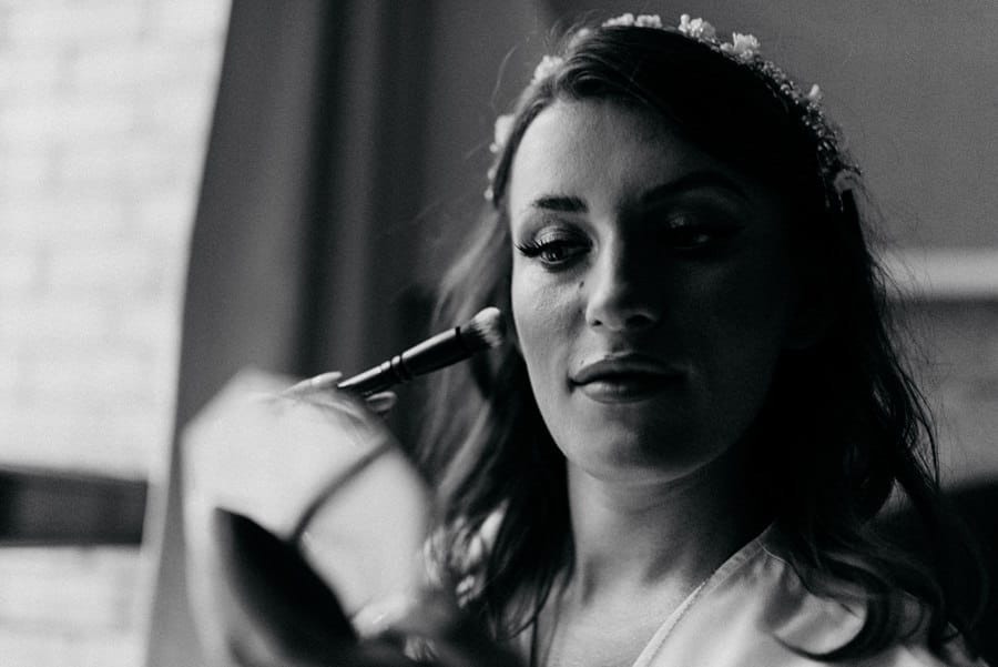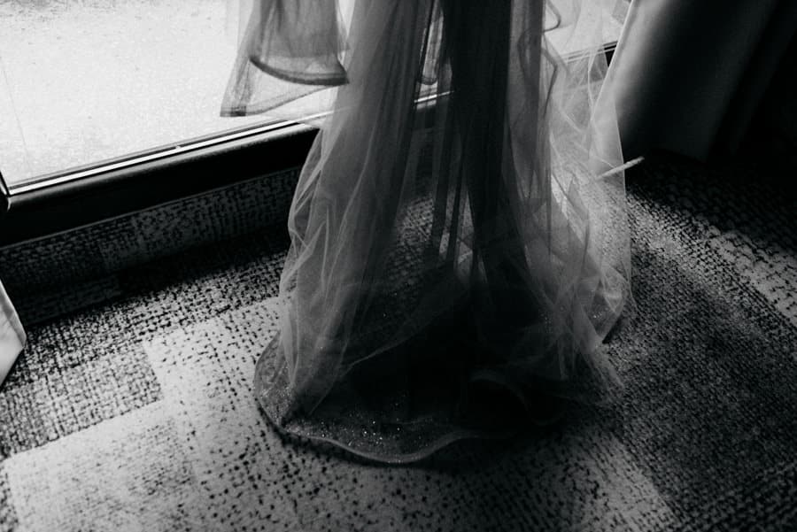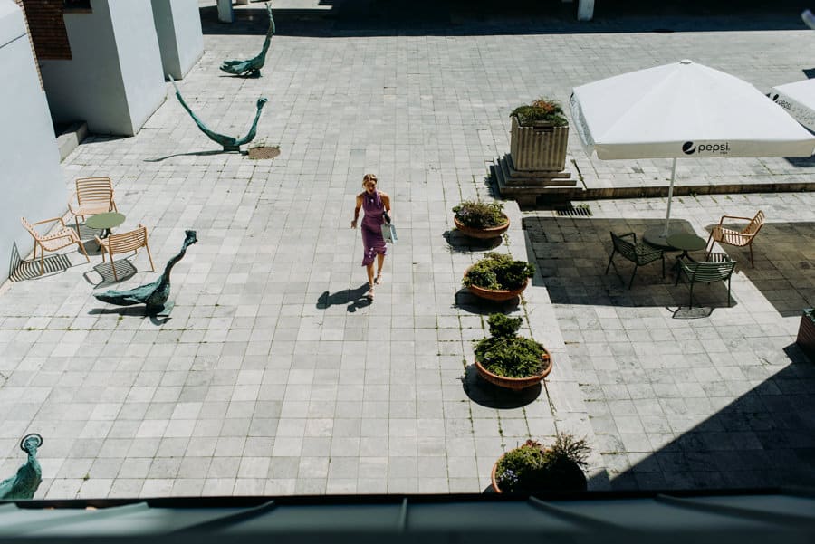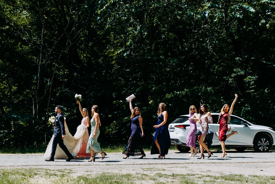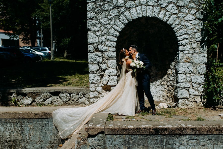 Już od samego rana wiedziałem, że ten dzień będzie wyjątkowy. Przygotowania odbywały się w pięknych, stylowych apartamentach, z których roztaczał się niesamowity widok. Dominika z kieliszkiem prosecco w dłoni, powoli zamieniała się w Pannę Młodą – uśmiechniętą, promienną i absolutnie spokojną. W tle krzątał się ich mały, uroczy piesek, który bez dwóch zdań skradł kilka ujęć – zupełnie zasłużenie.