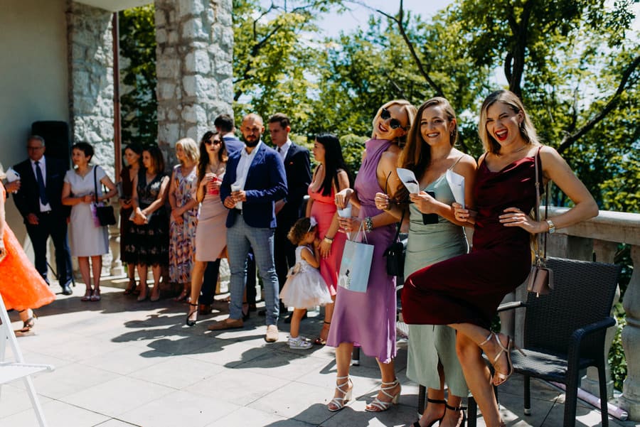 Po powrocie do restauracji część gości wybrała strefę chilloutu na tarasie – rozmowy przy winie, śmiechy i relaks pod gwiazdami. W tym samym czasie parkiet wciąż tętnił życiem – gorące tańce, zabawy i mnóstwo radości. To była mieszanka elegancji i luzu, która doskonale odzwierciedlała energię tego dnia.